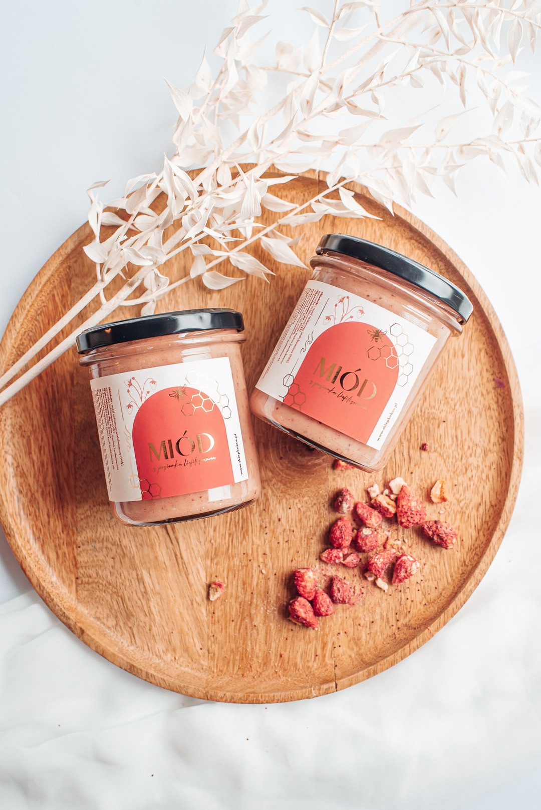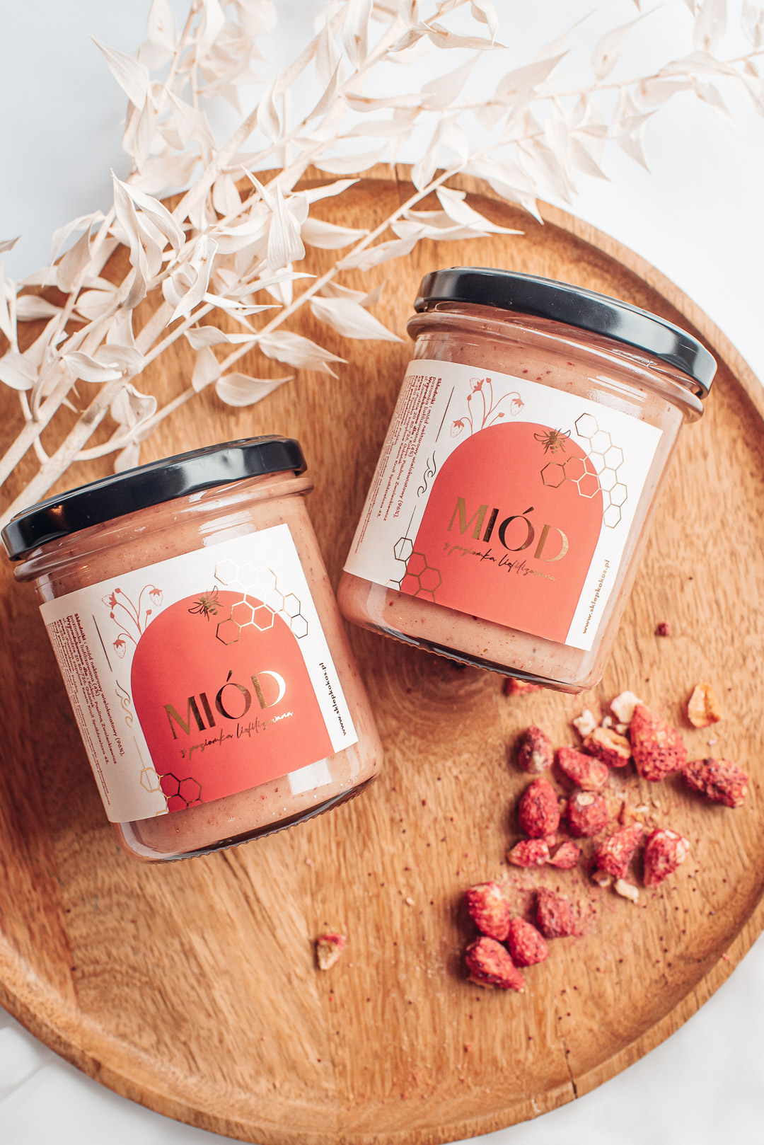 Składniki: 96% miód wielokwiatowy nektarowy, 4% liofilizowana poziomka